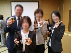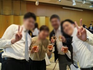また、社員大会の後には「懇親会」を行いました。部署混合の着席スタイルでしたので、さまざまな年代の社員や、普段の業務では接点の少ない部署の社員とも交流することができました。改めて社員のあたたかさを感じ、楽しい時間を過ごすことができました。